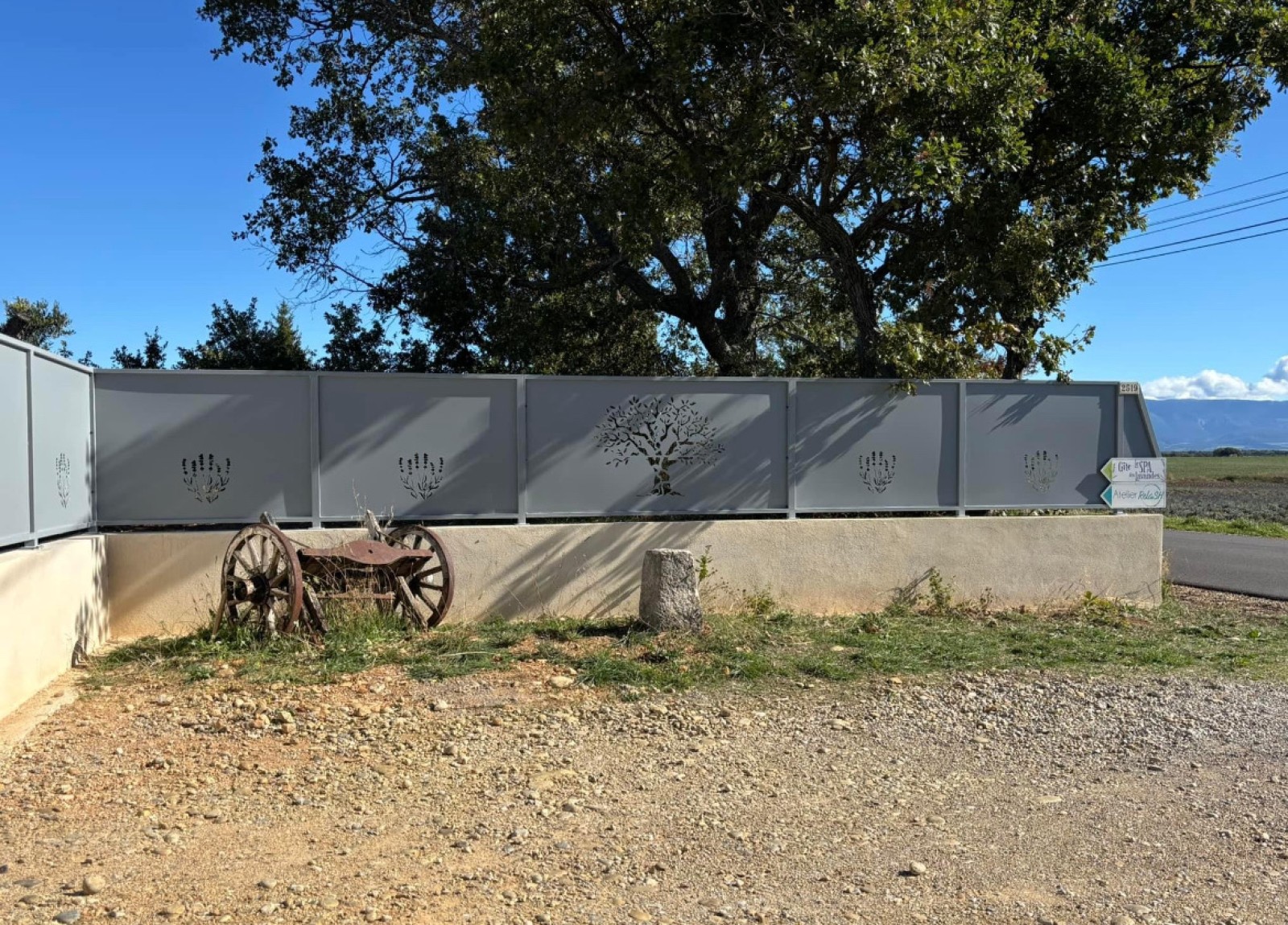 Ces palissades, en plus d'être esthétiques, répondent au besoin du client de sécuriser l'entrée de leur gîte situé sur le plateau de Valensole et ainsi éviter des intrusions extérieures.